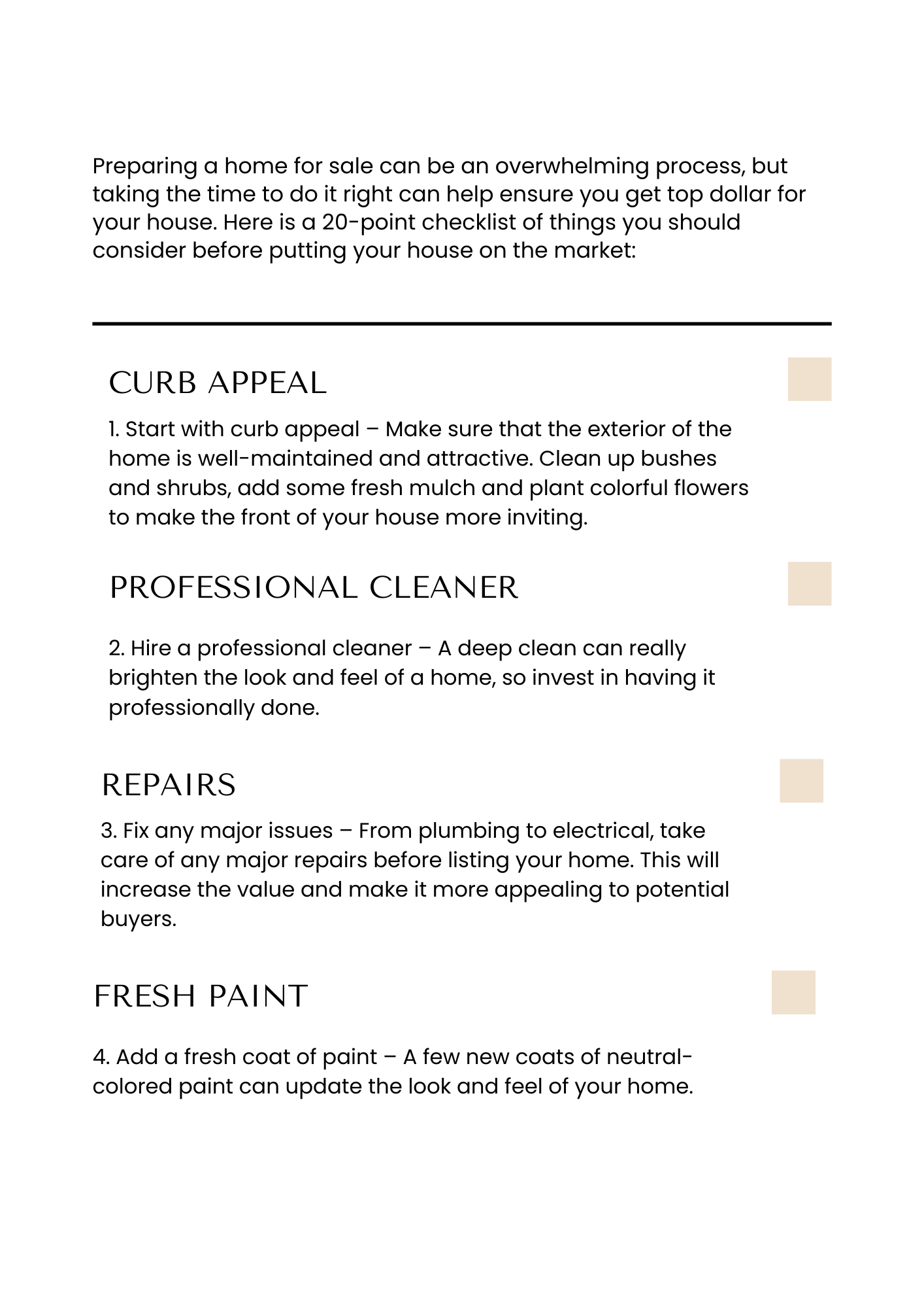Preparing a home for sale can be an overwhelming process, but taking the time to do it right can help ensure you get top dollar for your house.